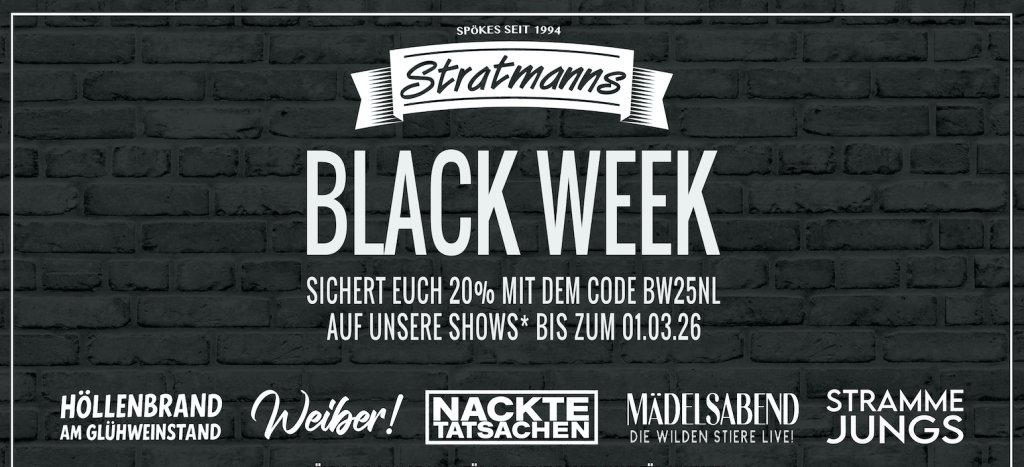 In Euerm Stratmanns Theater in Essen gibt es garantiert tolle Abende mit bester Unterhaltung und Comedy! Die angesagtesten Comedians und Kabarettisten - nicht nur des Ruhrgebiets - treten auf unserer bundesweit bekannten Bühne auf: Torsten Sträter, Jochen Malmsheimer, Frank Goosen, Florian Schroeder, Kai Magnus Sting, Carmela de Feo, René Steinberg und noch vielen anderen Größen der LIVE-Unterhaltung geben sich in diesem Kleinkunsttempel die Klinke in die Hand.